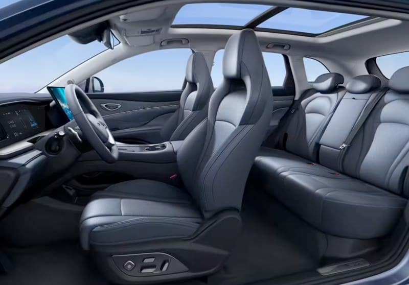 Το εσωτερικό αποπνέει πολυτέλεια και τεχνολογική καινοτομία, χάρη στο σχεδιαστικό concept Ocean Cockpit. Ξεχωρίζει η πλωτή κεντρική κονσόλα και ο ψηφιακός πίνακας οργάνων, πλαισιωμένα από εντυπωσιακά κουμπιά σε σχήμα «παγόβουνου», δημιουργώντας ένα περιβάλλον υψηλής αισθητικής.