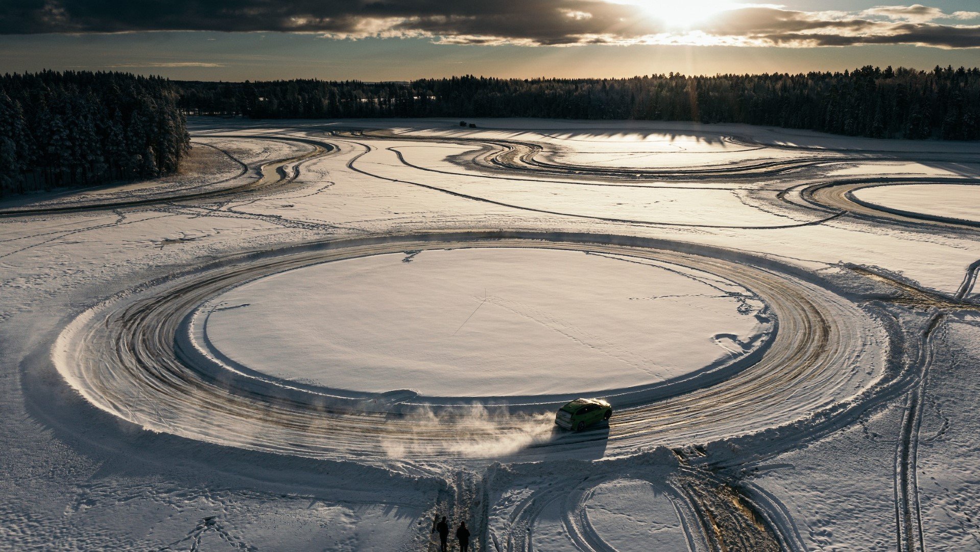Αρχικά, να αναφέρουμε ότι η τσέχικη φίρμα επέλεξε ένα αυτοκίνητο παραγωγής το οποίο είχε υποστεί τροποποίηση μόνο στην περίπτωση των τροχών. Πιο συγκεκριμένα, το Enyaq RS iV διέθετε τροχούς 20 ιντσών και ελαστικά με καρφιά σε όλους τους τροχούς.