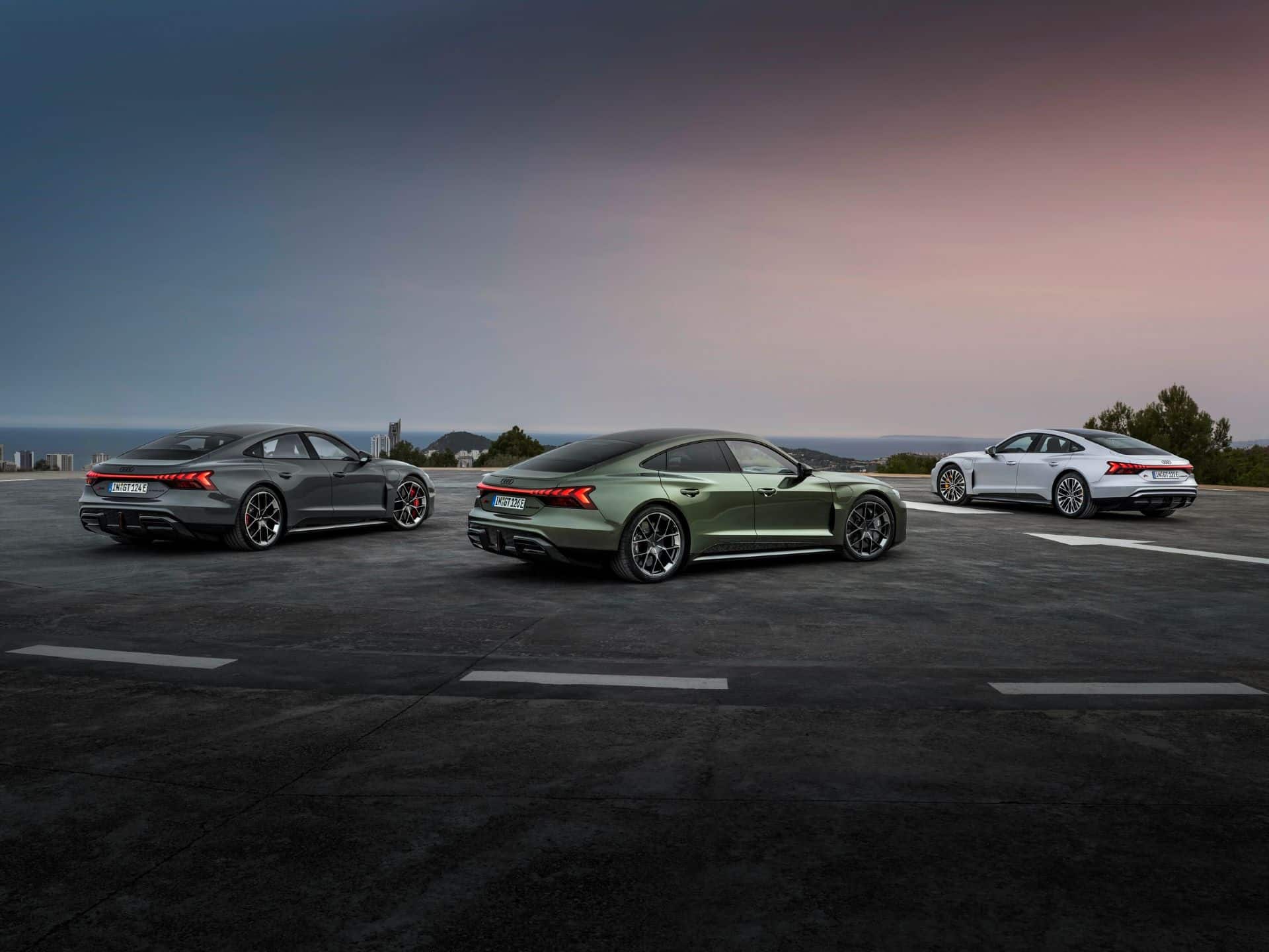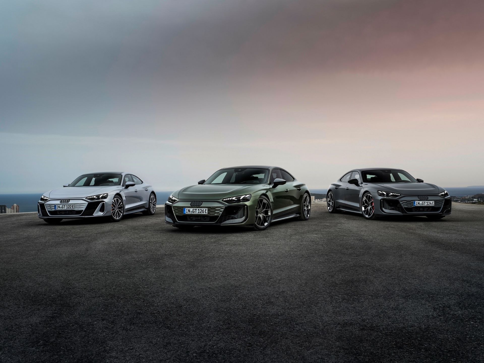 Η Audi προσφέρει το e-tron GT, στις εκδόσεις S e-tron GT, RS e-tron GT και RS e-tron GT Performance. Όλες οι εκδόσεις διαθέτουν αναβαθμισμένη μπαταρία χωρητικότητας 97 kWh, η οποία εξασφαλίζει μεγαλύτερη αυτονομία. Παράλληλα, το όχημα έχει μειωμένο βάρος κατά 9 κιλά, βελτιώνοντας περαιτέρω την απόδοσή του. Η ισχύς κυμαίνεται από 592 ίππους στη βασική έκδοση, ενώ στην κορυφαία RS Performance φτάνει τους 843 ίππους. Με τη χρήση του Launch Control, οι επιδόσεις εκτοξεύονται, αγγίζοντας τους 679 ίππους για το S e-tron GT, τους 857 ίππους για το RS και τους 925 ίππους στην έκδοση Performance.