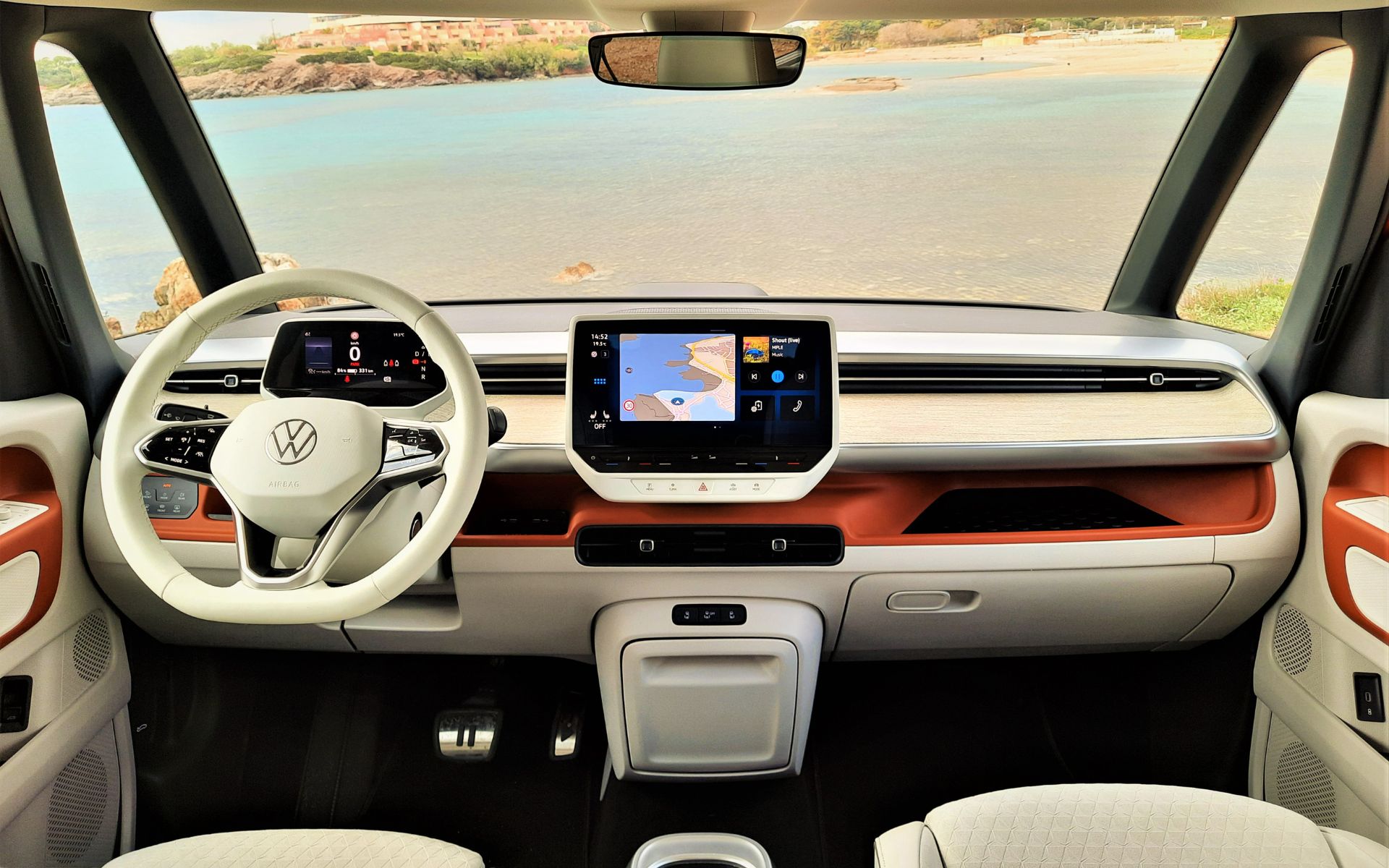 Αρχικά, αν κάποιος θέλει να περάσει απαρατήρητος, ας επιλέξει άλλο αυτοκίνητο. Το ID. Buzz μπορεί να είναι ηλεκτρικό, άρα αθόρυβο, όμως η εμφάνιση του μόνο «ήσυχη» δεν είναι. Μπορεί να το είχαμε στη διάθεση μας για εξαιρετικά μικρό χρονικό διάστημα, όμως ήταν αρκετό για να γίνουμε το επίκεντρο του ενδιαφέροντος. Προφανώς σε συνδυασμό με το πορτοκαλί χρώμα του, το οποίο μας άρεσε περισσότερο σε σχέση με άλλα που είδαμε προς δοκιμή. Απλά το αναφέρουμε.
