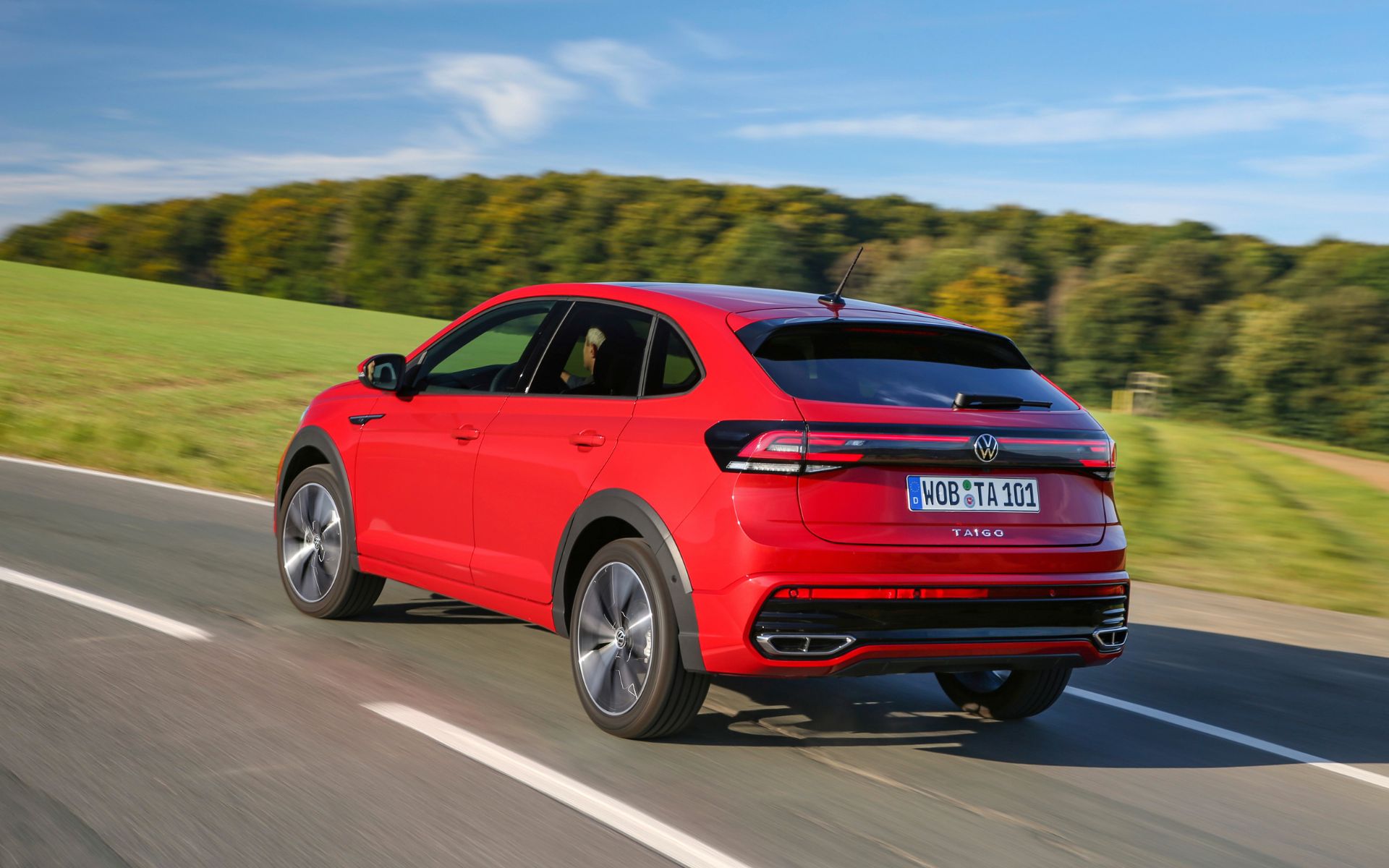 Η γερμανική φίρμα περιγράφει το Taigo ως «coupe/SUV με άποψη» και έχει απόλυτο δίκιο! Το Taigo διαθέτει ένα από τα πιο ενδιαφέροντα σχήματα της αγοράς και πιο συγκεκριμένα μεταξύ των μικρών SUV. Προφανώς, το σημείο του αμαξώματος που ξεχωρίζει είναι η έντονα κεκλιμένη γραμμή της οροφής στο πίσω μέρος. Μαζί με την κλίση προς τα εμπρός της τρίτης κολώνας, χαρίζουν στο νεότερο μέλος των SUV της Volkswagen ένα ιδιαίτερα δυναμικό προφίλ.