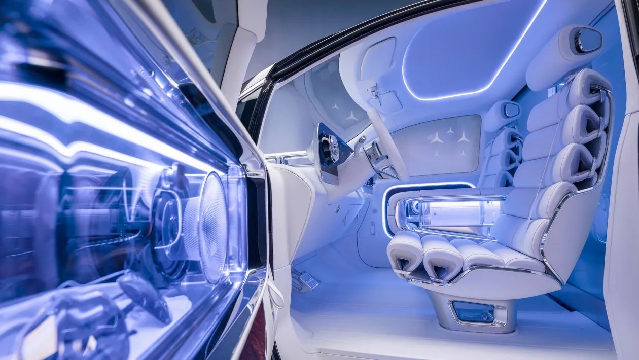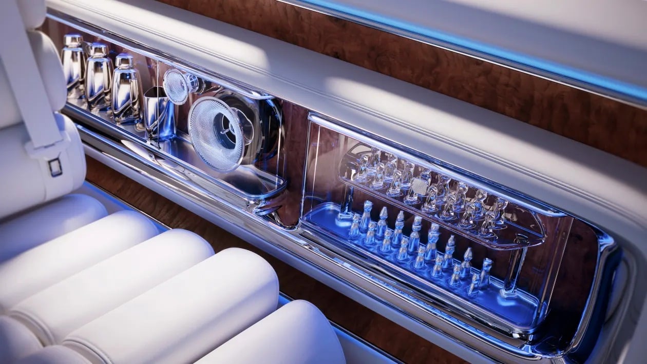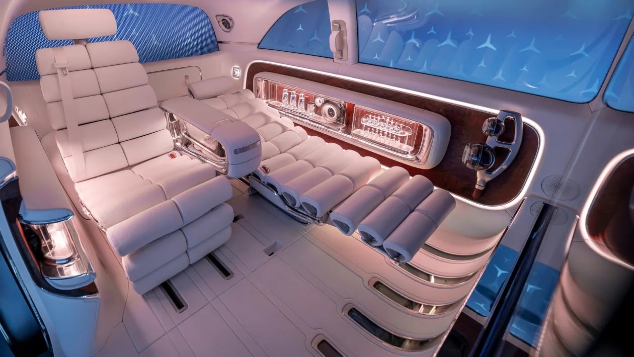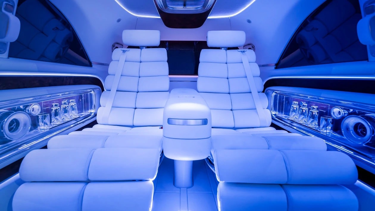 Και σαν να μην έφταναν όλα αυτά, μια τεράστια 4K οθόνη 65 ιντσών μετατρέπει την καμπίνα σε κινηματογραφική εμπειρία, με τη βοήθεια 7 προβολέων στο πάτωμα και την οροφή, που προσφέρουν εικονική θέαση 360 μοιρών.