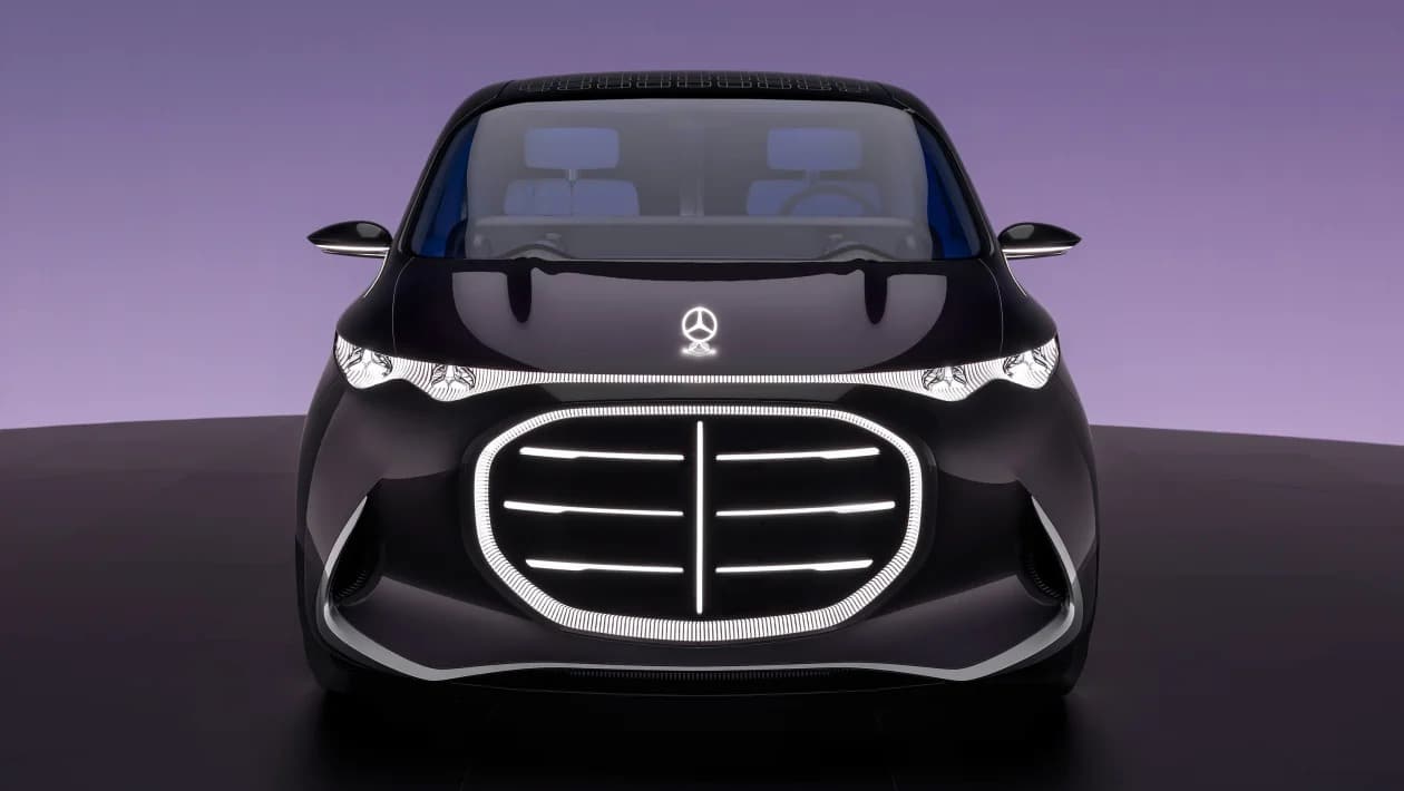 Η εξωτερική σχεδίαση είναι εξίσου εντυπωσιακή. Κυριαρχεί μια νέα, φουτουριστική εκδοχή της μάσκας ψυγείου της Mercedes, με φωτιζόμενο περίγραμμα και LED ράβδους, παραπέμποντας στα παραδοσιακά στοιχεία των μοντέλων ICE.