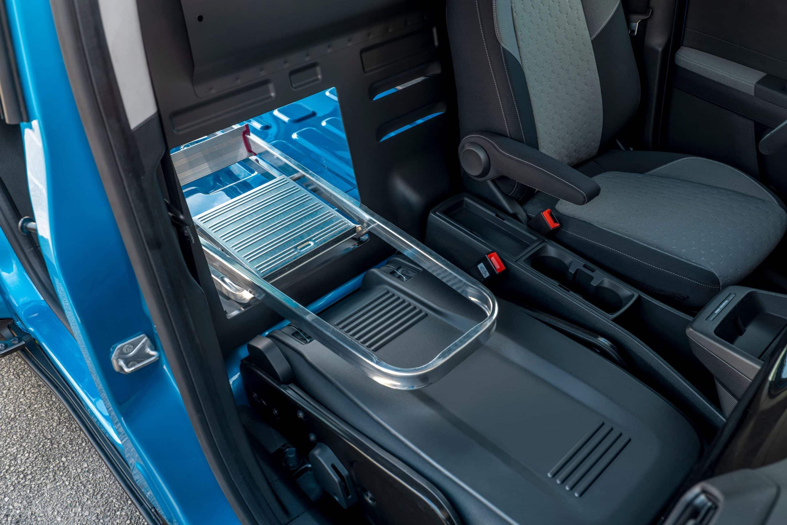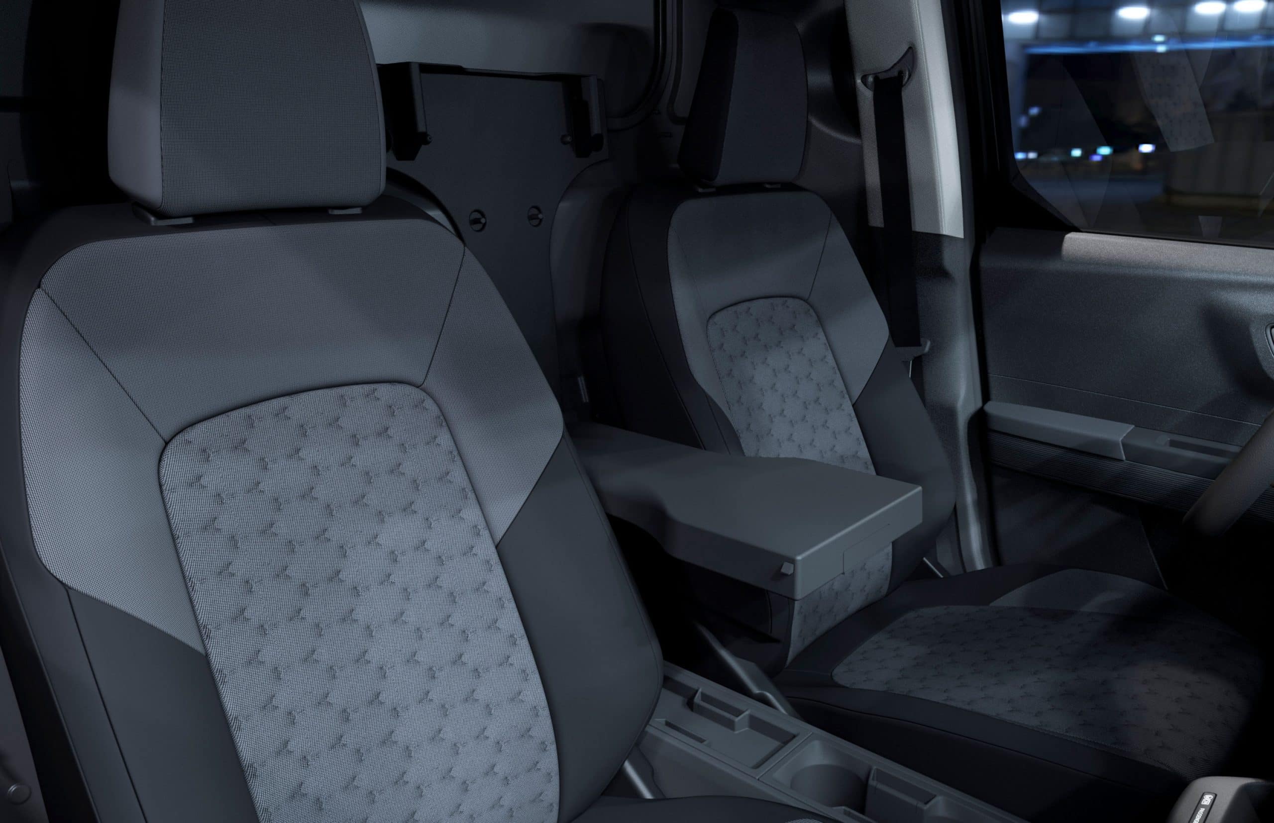 Το αμιγώς ηλεκτρικό E-Tranist Courier είναι ένα όχημα που έχει σχεδιαστεί και στο εσωτερικό με κριτήριο όλα όσα αναζητούν οι σύγχρονοι επαγγελματίες από ένα συμπαγές βαν. Έτσι, το νέο EV της Ford Pro διαθέτει τον πιο ολοκληρωμένο βασικό εξοπλισμό στην κατηγορία, ο οποίος περιλαμβάνει μεταξύ άλλων ένα τιμόνι τύπου squircle, που προσφέρει βελτιωμένο χώρο για τα πόδια και καλύτερη ορατότητα για τον οδηγό. Ταυτόχρονα, για ακόμα περισσότερη ευκολία στην καθημερινότητα, ο επιλογέας κίνησης βρίσκεται εγκατεστημένος στην κολώνα του τιμονιού, ενώ το μπουτόν εκκίνησης του ηλεκτρικού κινητήρα και το ηλεκτρονικό χειρόφρενο έρχονται με τη σειρά τους να διασφαλίσουν ακόμα μεγαλύτερο αποθηκευτικό χώρο.