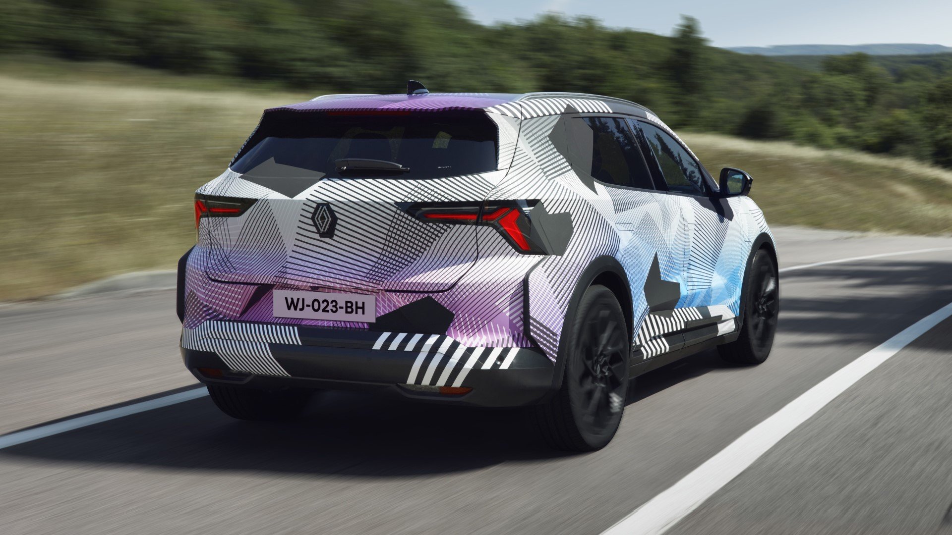 Τα αυτοκίνητα προπαραγωγής, όπως το συγκεκριμένο Scenic E-Tech, διαθέτουν ένα καμουφλάζ από τη Renault Design. Σύμφωνα με την εταιρεία, αυτό αποτελείται από ένα παιχνίδι γραμμών και μοτίβων από το λογότυπο της μάρκας. Επιπλέον, αποτίνει φόρο τιμής στο σχέδιο που έγινε προηγουμένως για το Megane E-Tech.