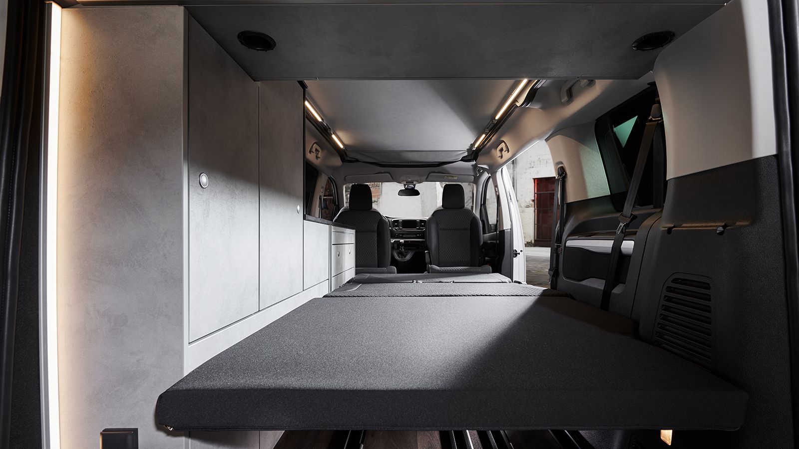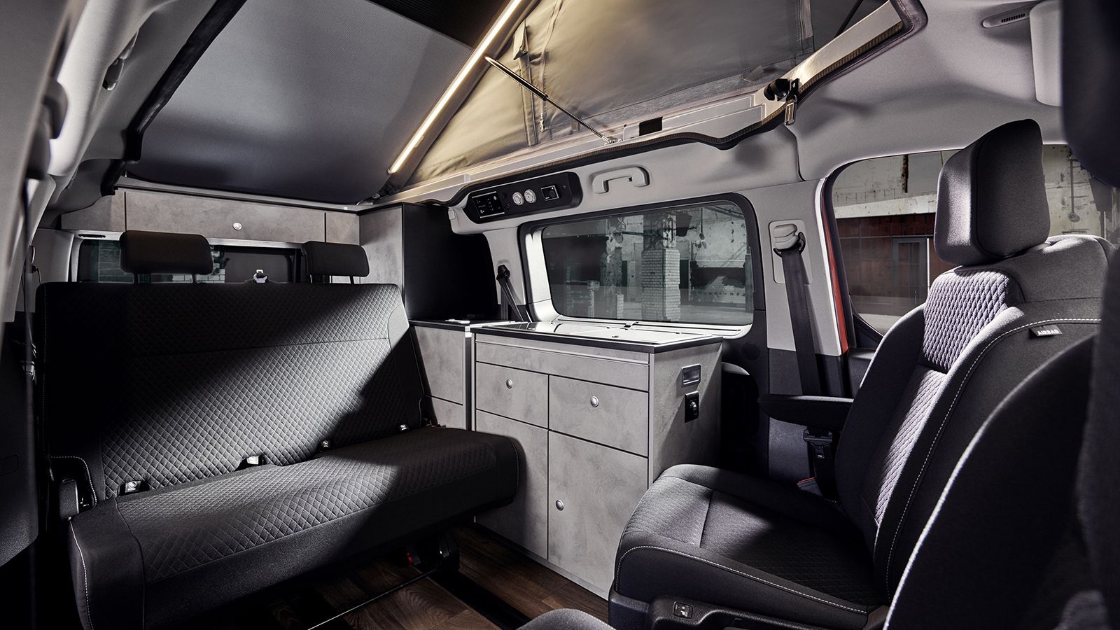 Εισερχόμενοι στο εσωτερικό του αυτοκινουμένου τροχόσπιτου, συναντάμε φούρνο, νιπτήρα, μάτια, αλλά και ντουλάπια. Ακόμη, η πτυσσόμενη οροφή του προσφέρει το χώρο για τα 2 κρεβάτια που φιλοξενεί, ενώ ο πίσω πάγκος προσφέρει χώρο για ένα διπλό κρεβάτι. Τέλος, υπάρχουν και δεξαμενές για φρέσκο, αλλά και για το ήδη χρησιμοποιημένο νερό.