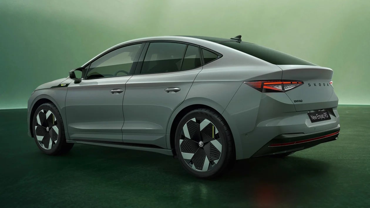Το Enyaq vRS, ξεχωρίζει με σπορ λεπτομέρειες στο χρώμα του αμαξώματος και έναν χαρακτηριστικό κόκκινο ανακλαστήρα, στο πίσω μέρος. Παραμένει διαθέσιμο και σε έκδοση Coupé, με μειωμένο συντελεστή οπισθέλκουσας (0,239Cd).