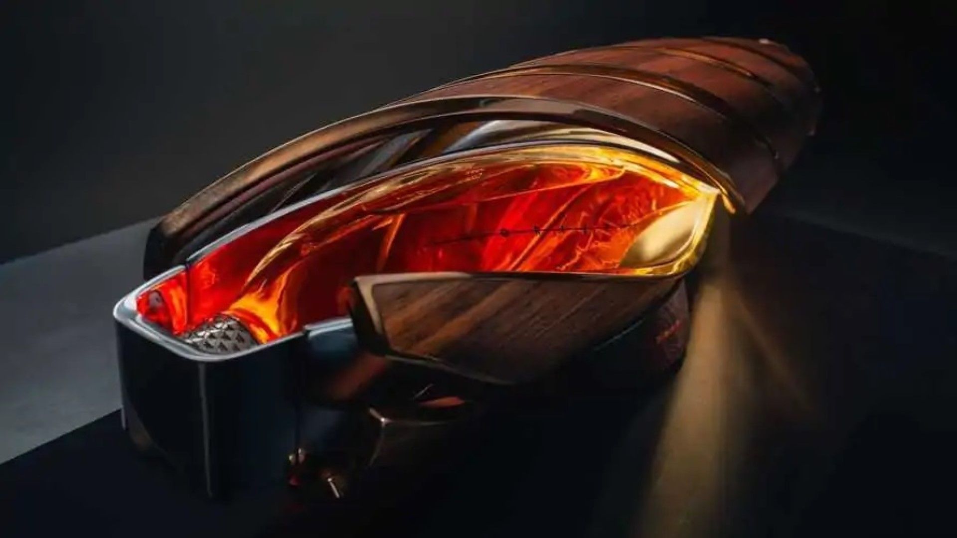 Η ιδιαιτερότητα της φιάλης είναι η οριζόντια θέση του, ενώ όσες γνωρίζουμε μέχρι σήμερα έχουν κάθετο σχεδιασμό. Ο οριζόντιος σχεδιασμός παίρνει έμπνευση από τα μοντέλα της μάρκας αυτοκινήτων, ενώ η κατασκευή του είναι από βιώσιμα και ανακυκλωμένα υλικά.