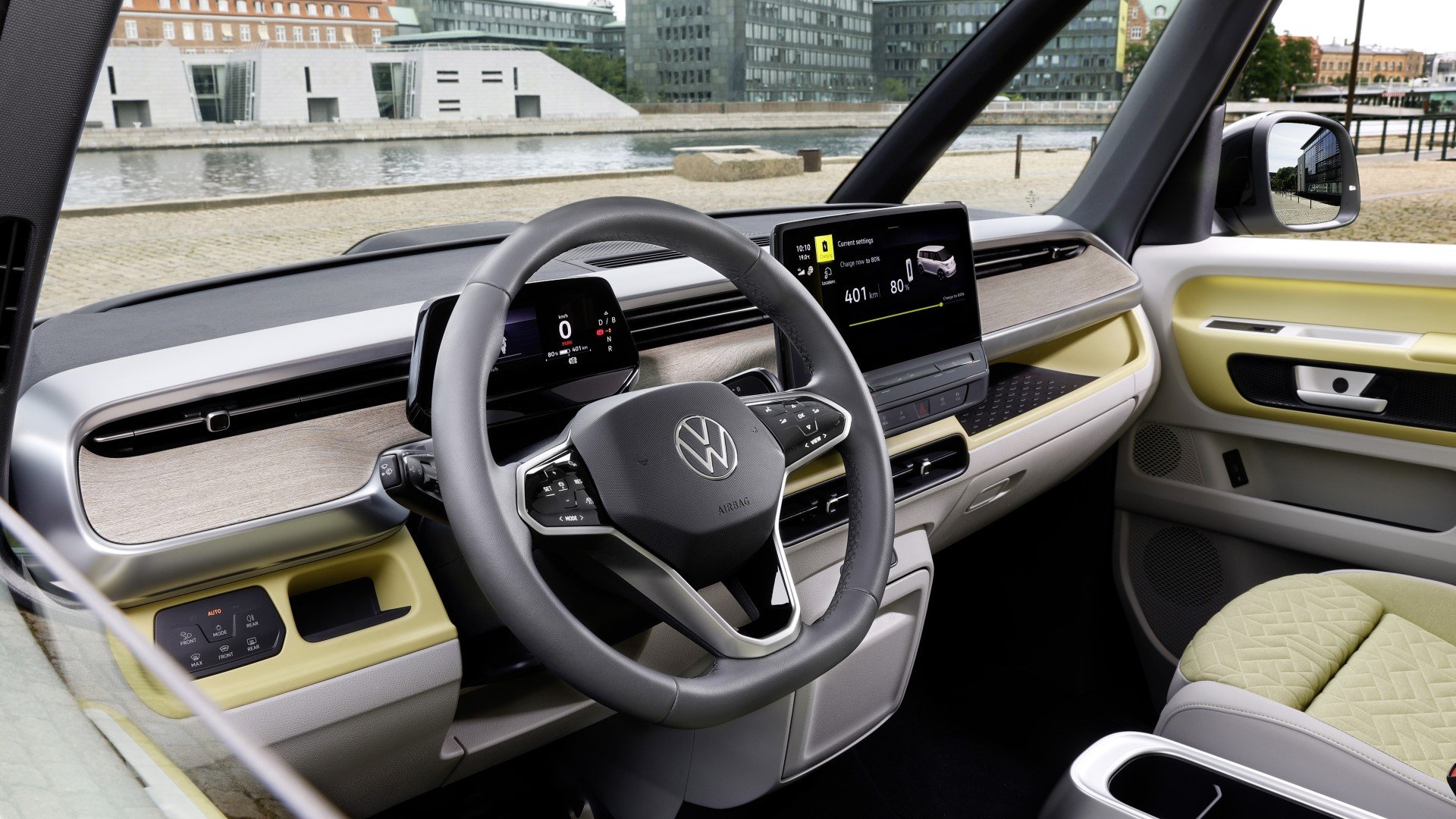 Αντίστοιχα, στα καθίσματα με το φιλικό προς το περιβάλλον υλικό ArtVelours Eco, το ποσοστό ανακύκλωσης είναι της τάξης του 71%. Επιπλέον, οι επενδύσεις του δαπέδου και του διακοσμητικού ουρανού οροφής του ID. Buzz είναι εξ ολοκλήρου από ανακυκλωμένο πολυεστέρα.