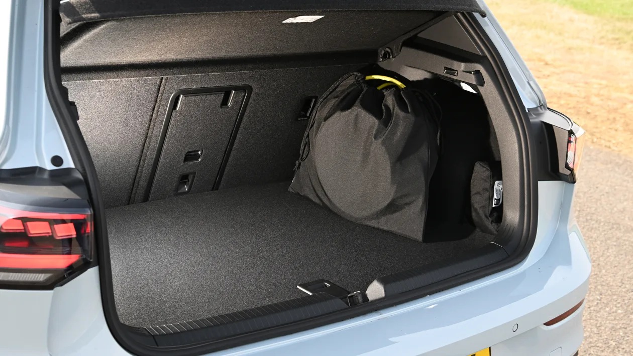Ο χώρος αποσκευών περιορίζεται στα 273 λίτρα, λόγω του υβριδικού συστήματος – σημαντικά λιγότερα από τα 381 λίτρα ενός απλού Golf. Ωστόσο, η καμπίνα παραμένει ευρύχωρη και πρακτική, με καλή ποιότητα κατασκευής και τεχνολογικά χαρακτηριστικά αιχμής.