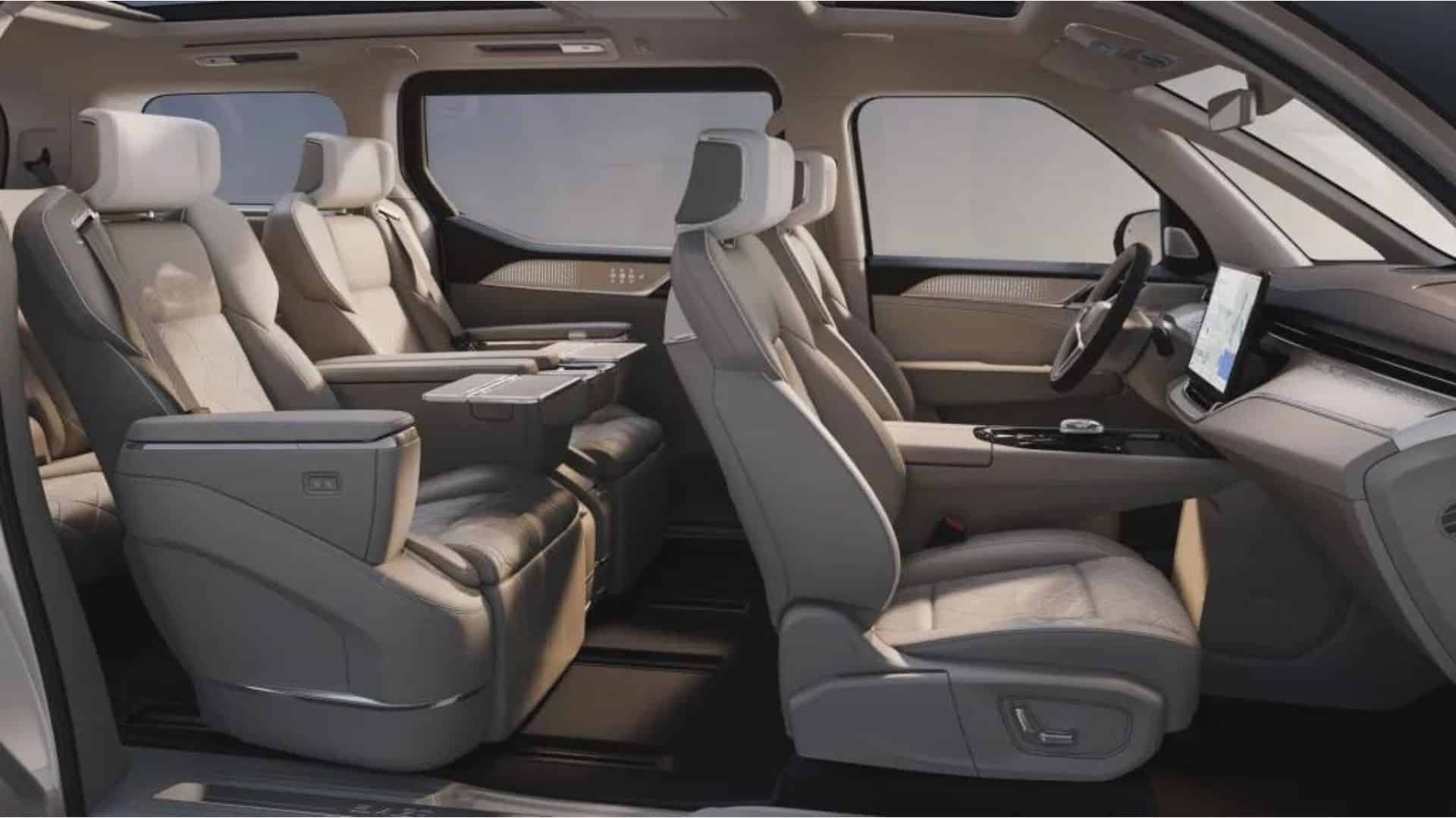 Εσωτερικά, το ηλεκτρικό minivan προσφέρει χώρο για 6 επιβάτες, ενώ υπάρχουν 3 σειρές καθισμάτων. Να σημειώσουμε πως τις εντυπώσεις κλέβει μία οθόνη 15,6 ιντσών, καθώς και η οθόνη infotainment μεγέθους 15,4 ιντσών. Φυσικά, υπάρχει και η κεντρική οθόνη, την οποία συνοδεύει ένας πλήρως ψηφιακός πίνακας οργάνων. Επίσης, διαθέτει και ηχοσύστημα Bowers & Wilkins, το οποίο έχει 21 ηχεία.