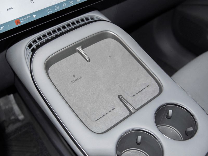 Στο εσωτερικό, κυριαρχεί η minimal αισθητική με έμφαση στην πολυτέλεια και την τεχνολογία. Δεν υπάρχει παραδοσιακός πίνακας οργάνων, όλα προβάλλονται σε μια πλωτή κεντρική οθόνη 15,6 ιντσών, ενώ χρησιμοποιούνται υλικά όπως φυσικό ξύλο, μέταλλο και δέρμα. Προσφέρονται τέσσερις χρωματικές επιλογές εσωτερικού.